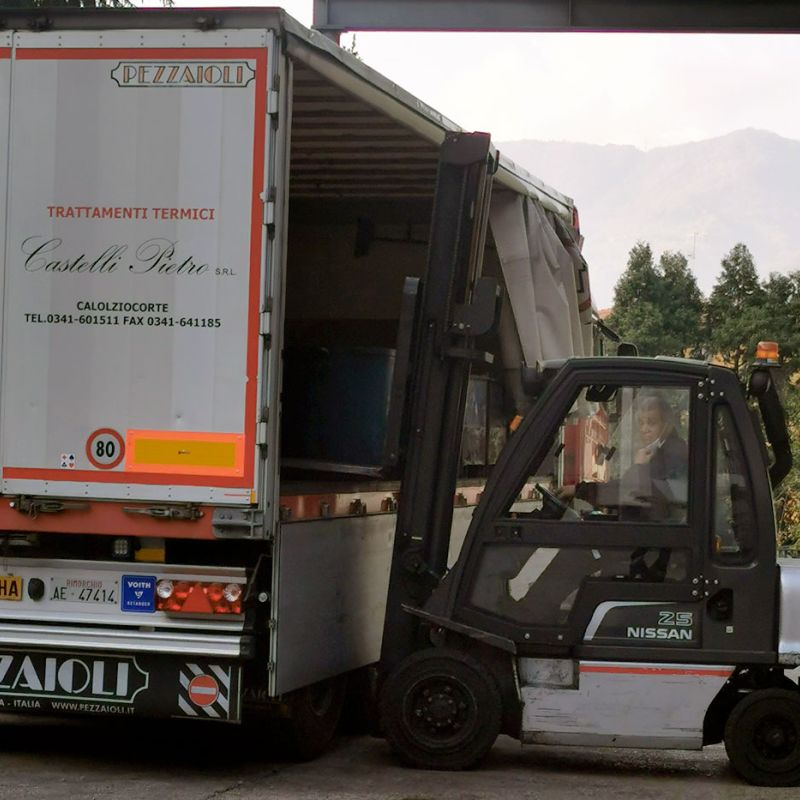 La Castelli Pietro è organizzata per garantire su richiesta del cliente il ritiro e la consegna del materiale trattato in giorni prestabiliti, affidandosi ad un trasportatore di fiducia.