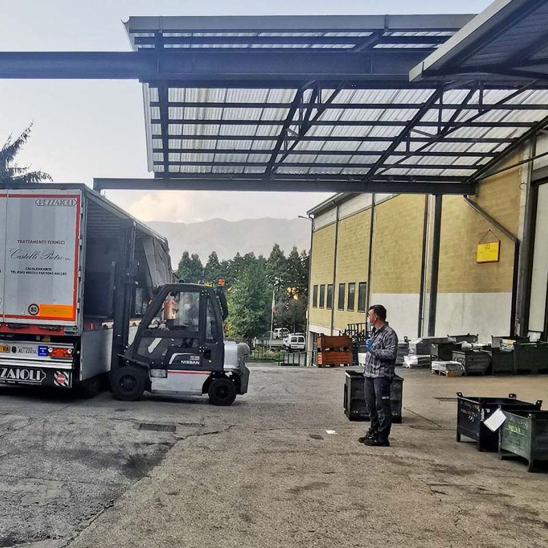 La Castelli Pietro è organizzata per garantire su richiesta del cliente il ritiro e la consegna del materiale trattato in giorni prestabiliti, affidandosi ad un trasportatore di fiducia.